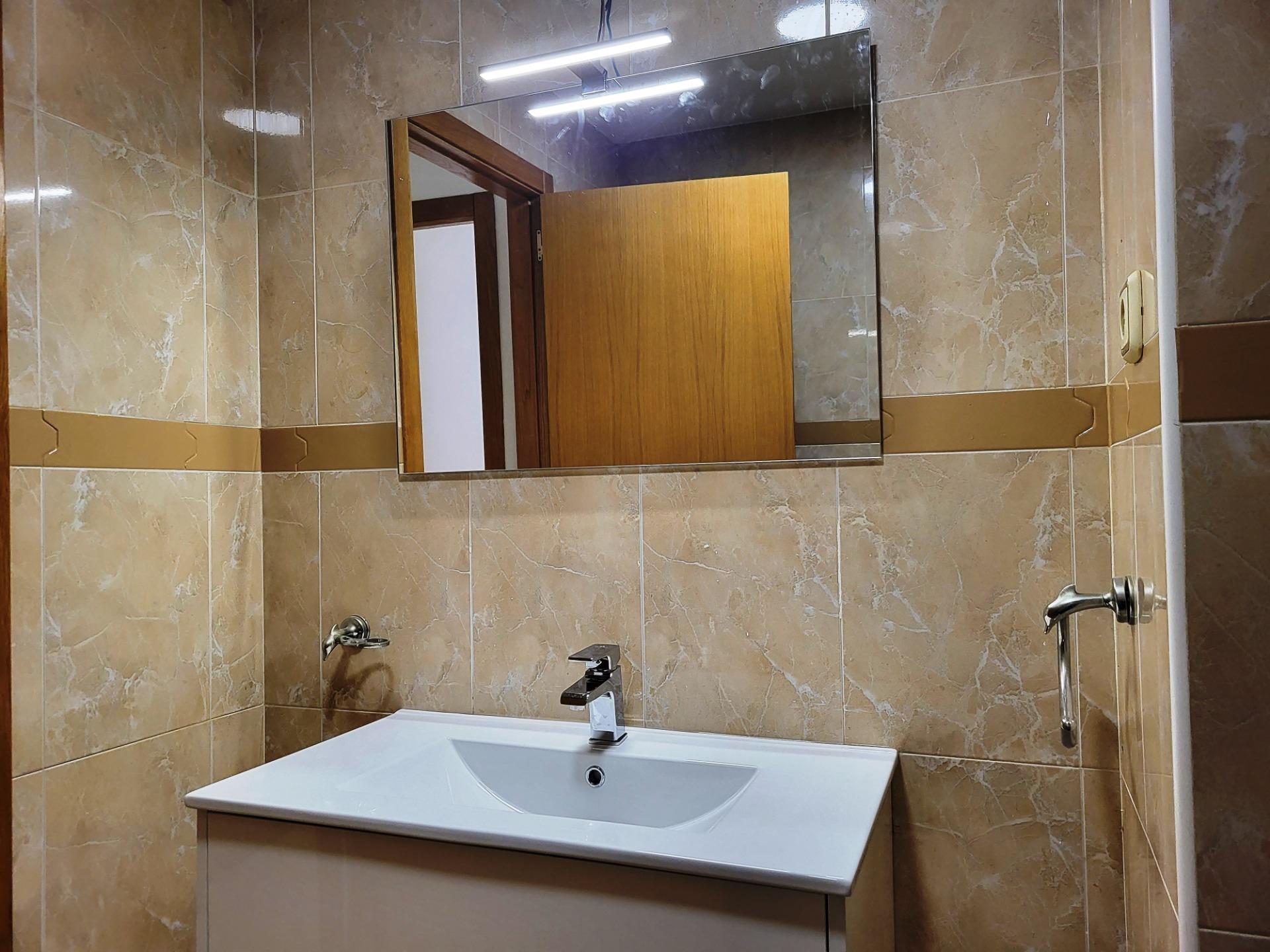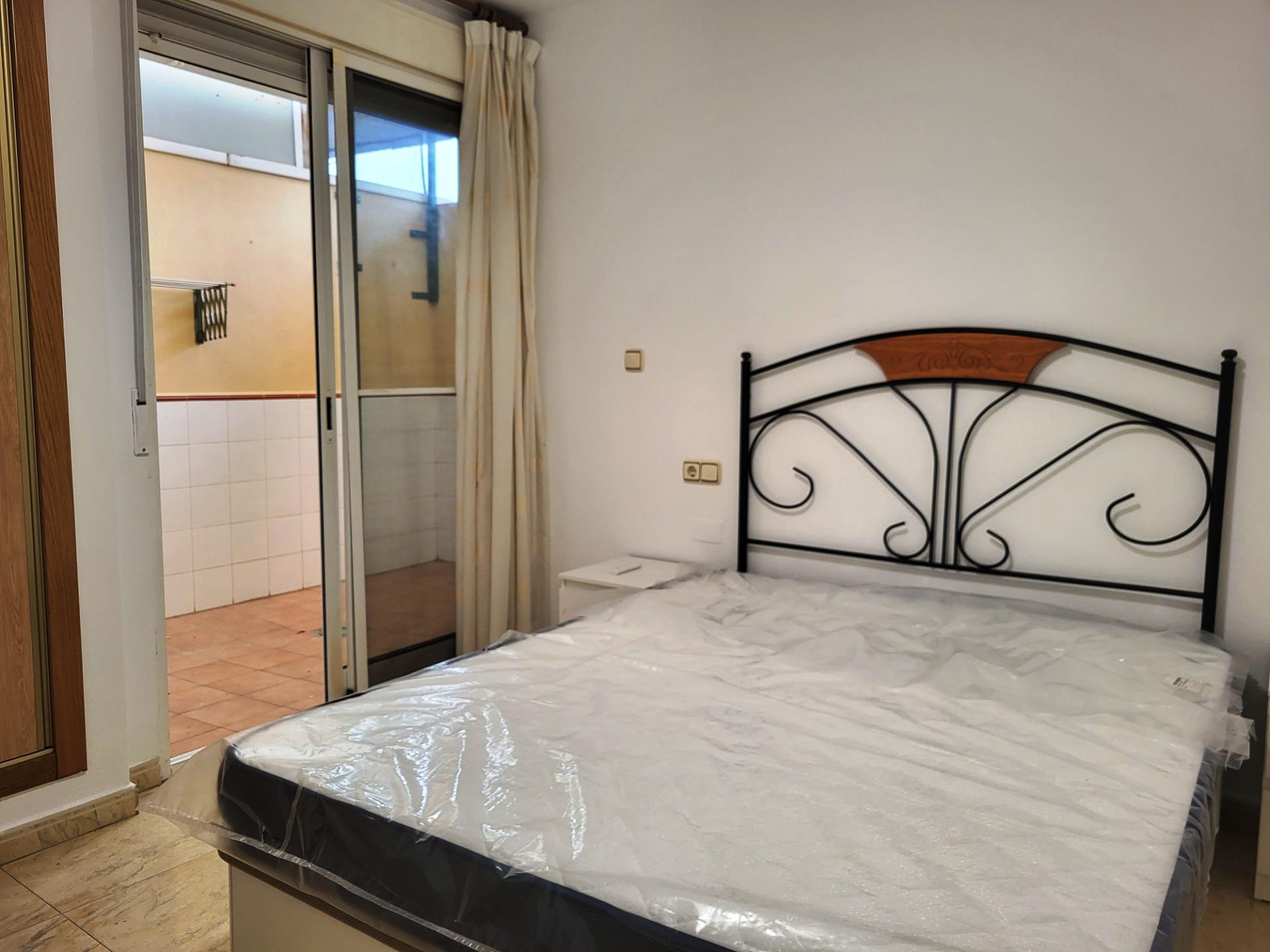 Bonito y cómodo apartamento totalmente amueblado (a estrenar) con salón-comedor y cocina americana.~~El apartamento tiene un amplio dormitorio doble con armario empotrado forrado por dentro, cuarto de baño con pie de ducha. La cama está equipada con canapé, lo que da un espacio perfecto para guardar y almacenar lo que necesites.~~La vivienda, también cuenta con sofá-cama en el salón.~~Dispone para comodidad del mismo de un amplio patio con tendedero, y zona para la lavadora, pila, armario, etc., ideal para guardar bicicletas y darle desahogo a la vivienda.~~El apartamento tiene un split de frío y calor en el salón y ventilador en el dormitorio.~~¡No pierdas el tiempo y ven a visitarlo!~