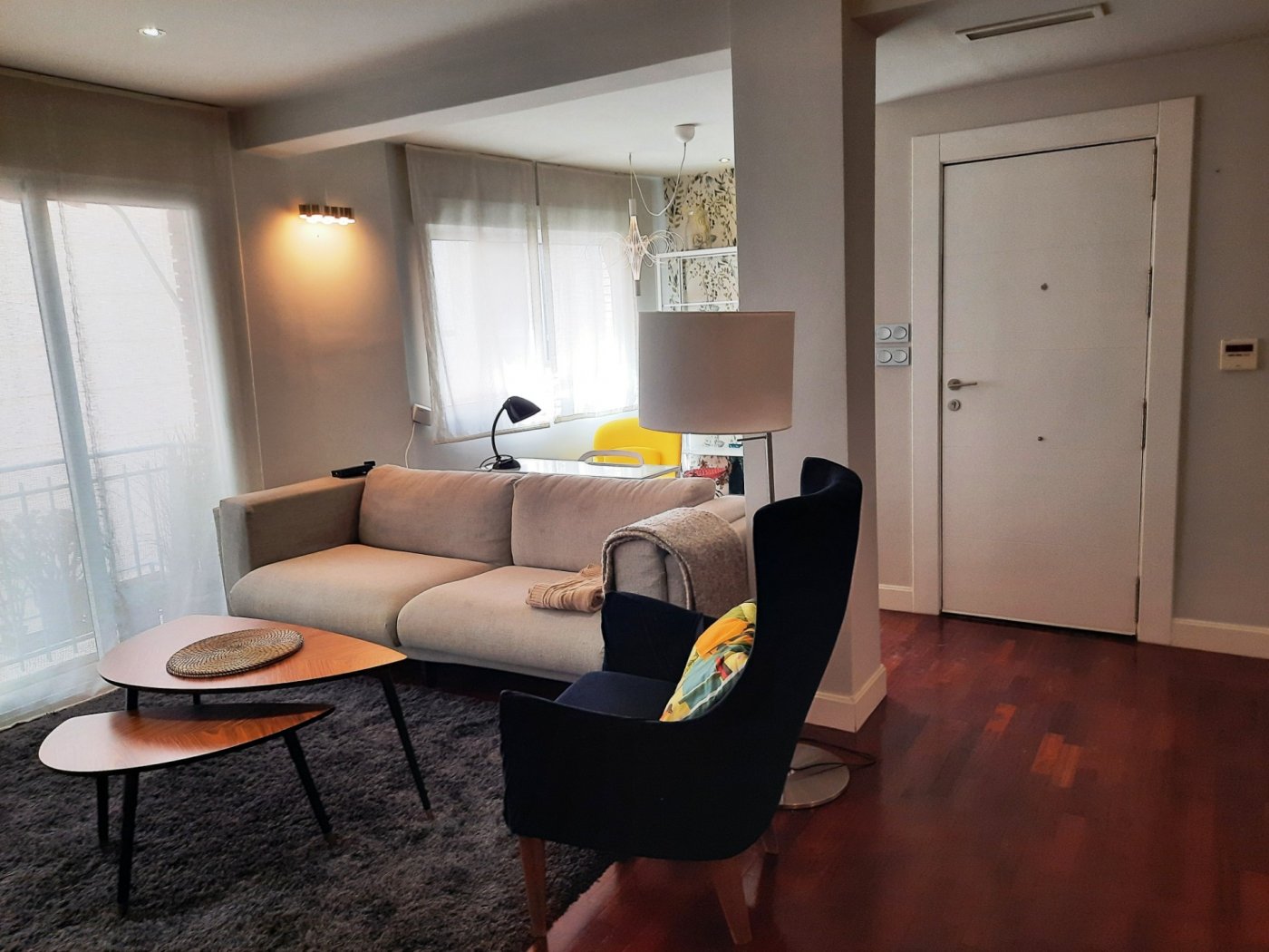 Descubre este precioso y moderno piso de dos dormitorios y dos cuartos de baño, situado en una ubicación privilegiada junto a la Plaza Cetina, en la calle Montijo, una tranquila y silenciosa calle peatonal a tan solo unos pasos de la calle Correos. Un auténtico oasis en pleno centro de la ciudad.~~La vivienda se abre directamente a un elegante espacio donde salón y cocina se integran de forma armoniosa, separados por una agradable zona de comedor con una bonita mesa, creando un ambiente amplio, funcional y muy acogedor.~~La cocina, totalmente equipada, cuenta con electrodomésticos de primeras marcas, incluyendo vinoteca, cafetera y todo lo necesario para el día a día, pensada para quienes disfrutan del confort y el diseño.~~A continuación se encuentra el dormitorio principal, que destaca por su amplio armario de pared a pared, televisión, split de frío y calor y un precioso cuarto de baño con ducha y ventana al exterior, que aporta luz y ventilación natural.~~La vivienda dispone además de un segundo aseo con ventilación, desde el cual se accede a un lavadero amplio y exterior, perfectamente equipado con pila, lavadora, secadora y espacio suficiente para almacenaje de productos de limpieza, aportando un gran desahogo a la vivienda.~~El segundo dormitorio ofrece un espacio adicional ideal para visitas o para otro miembro de la unidad familiar.~~Entre sus calidades destacan el aire acondicionado, caldera, suelo de parquet, pintura lisa recién renovada, mobiliario de líneas modernas y un encantador balconcito perimetral que aporta un toque especial a la vivienda.~~El edificio cuenta con ascensor, una buena comunidad de vecinos, entrada completamente plana y sin barreras arquitectónicas, lo que garantiza comodidad y accesibilidad.~~No dejes pasar la oportunidad de visitarlo, porque vivir en el centro… ¡es otra historia!~~NO SE ACEPTAN MASCOTAS.~