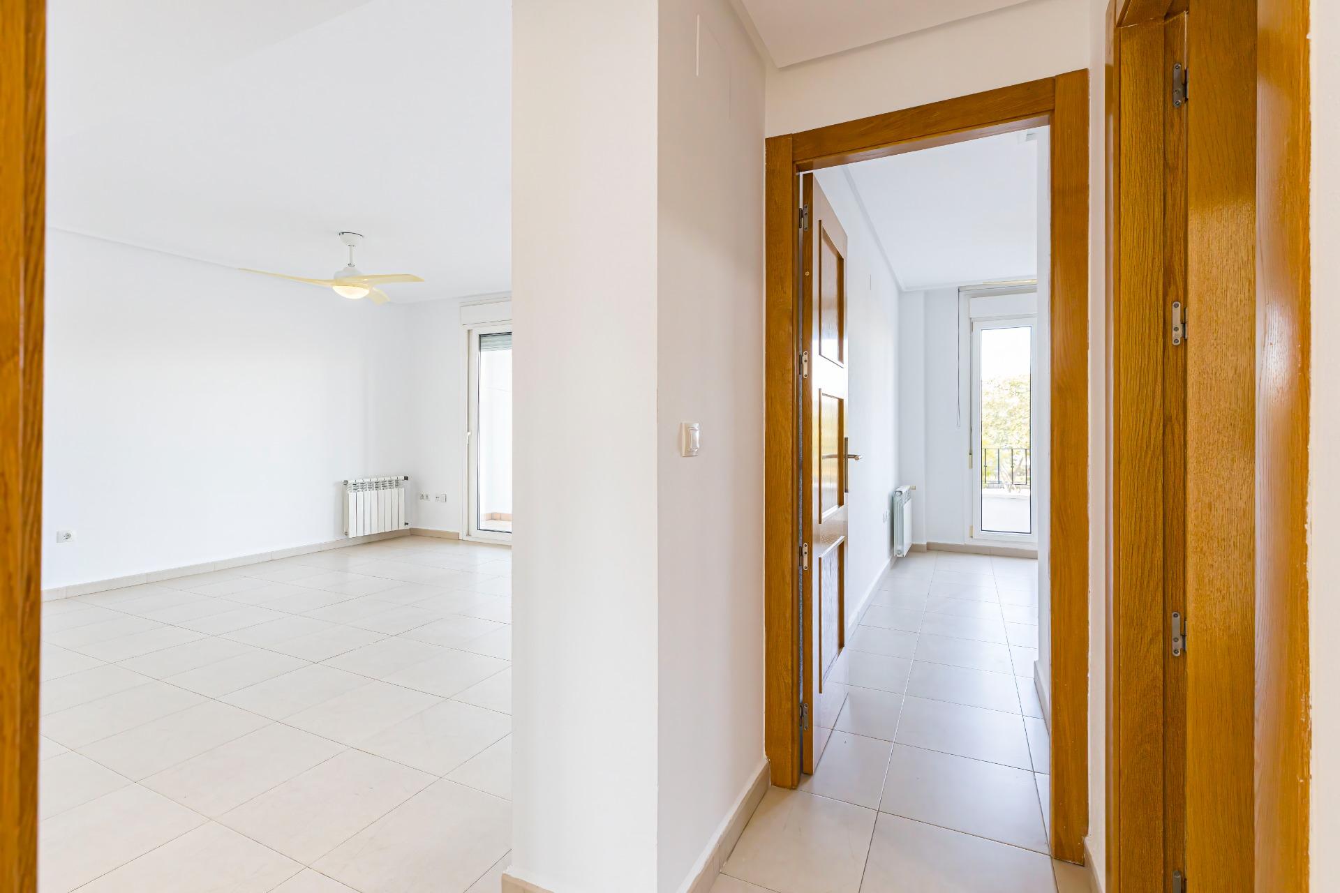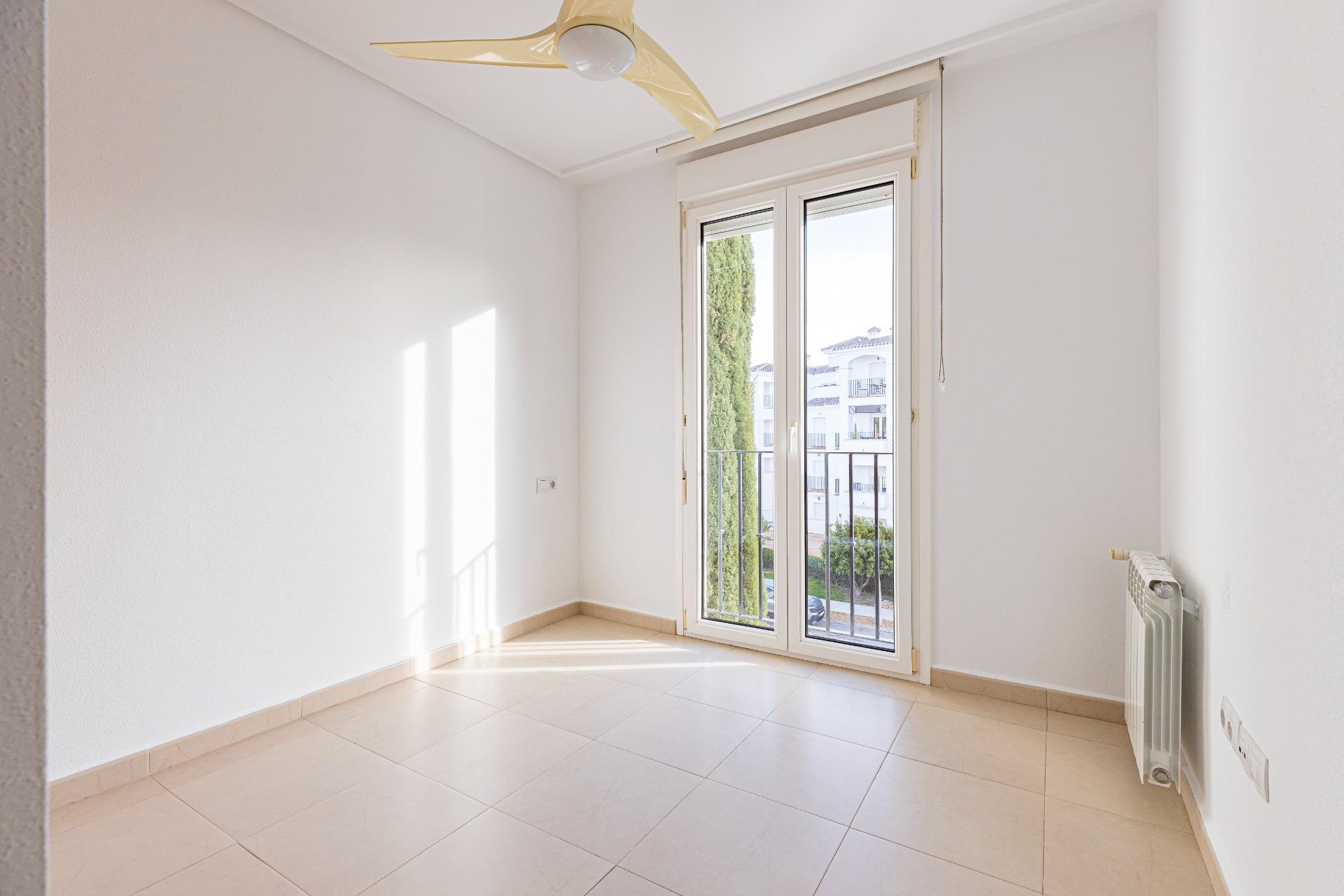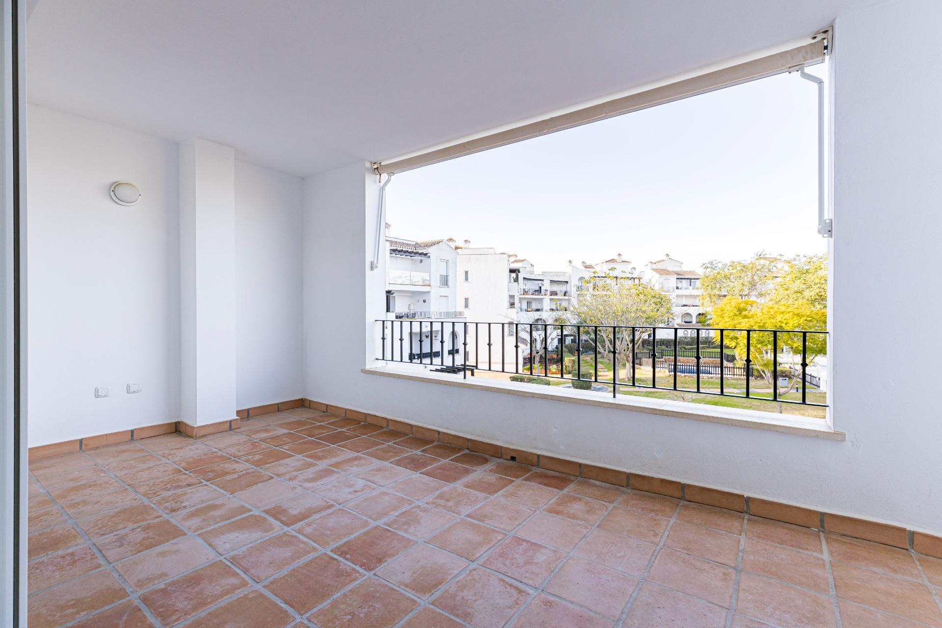 Luminoso y acogedor apartamento de 2 dormitorios, ubicado en la entrada de La Torre Golf Resort (Murcia), una zona en auge, junto al DoubleTree by Hilton, supermercado, zona comercial y todos los servicios.~~La vivienda se encuentra recién pintada y repasada, en muy buen estado, lista para entrar a vivir desde el primer día, sin necesidad de reformas.~~Dispone de:~~🛏 Dos dormitorios con armarios empotrados y ventiladores de techo.~~🛋 Salón-comedor amplio y cómodo, con aire acondicionado, WIFI y sofá cama.~~🌞 Terraza privada con toldo, con vistas despejadas a la piscina y jardines comunitarios.~~🍽 Cocina independiente totalmente equipada, con lavadero.~~🛁 Baño completamente reformado, con todo nuevo (grifería, espejo, muebles, apliques, mampara, plato de ducha, etc.), acabados modernos y diseño actual, un espacio renovado que aporta confort y valor a la vivienda.~~🚗 Plaza de garaje subterránea incluida.~~Piscina comunitaria rodeada de zonas verdes, visible desde el salón, dormitorio principal y terraza, creando un ambiente de tranquilidad y descanso durante todo el año.~~Ideal como residencia habitual, vivienda vacacional o inversión.~Resort con seguridad 24h, entorno cuidado y excelente clima.~~💶 Gastos:~~IBI: 348 €.~~Comunidad: 143 €.~~📞 Una vivienda cómoda, actual y lista para disfrutar. Contacta y ven a verla.~~~Información importante para compradores e intermediarios:~~Los propietarios han confiado en nosotros para gestionar la venta de su hogar, uno de sus bienes más preciados. Esto supone una garantía para ti como comprador: contarás con un servicio profesional, trato directo y sin intermediarios innecesarios.~~Por ello, te rogamos que, en caso de interés, contactes directamente con nosotros. No contactes con los propietarios; estamos aquí para acompañarte durante todo el proceso y facilitarte toda la información y documentación necesaria.~~Si eres agente inmobiliario y tienes un cliente potencialmente interesado, estaremos encantados de colaborar contigo.~~Notas legales:~~Gastos de compraventa y honorarios de agencia no incluidos en el precio de venta.~Los precios y ofertas publicados no son vinculantes y pueden estar sujetos a cambios.~